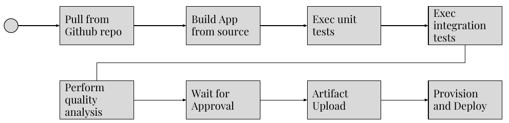 Now that the tools and the architecture of this lab are well known, let’s explore the CI/CD pipeline flow built for this lab. Note that the purpose of this pipeline is for demonstration only and may lack steps that a real-world CI/CD process might have.