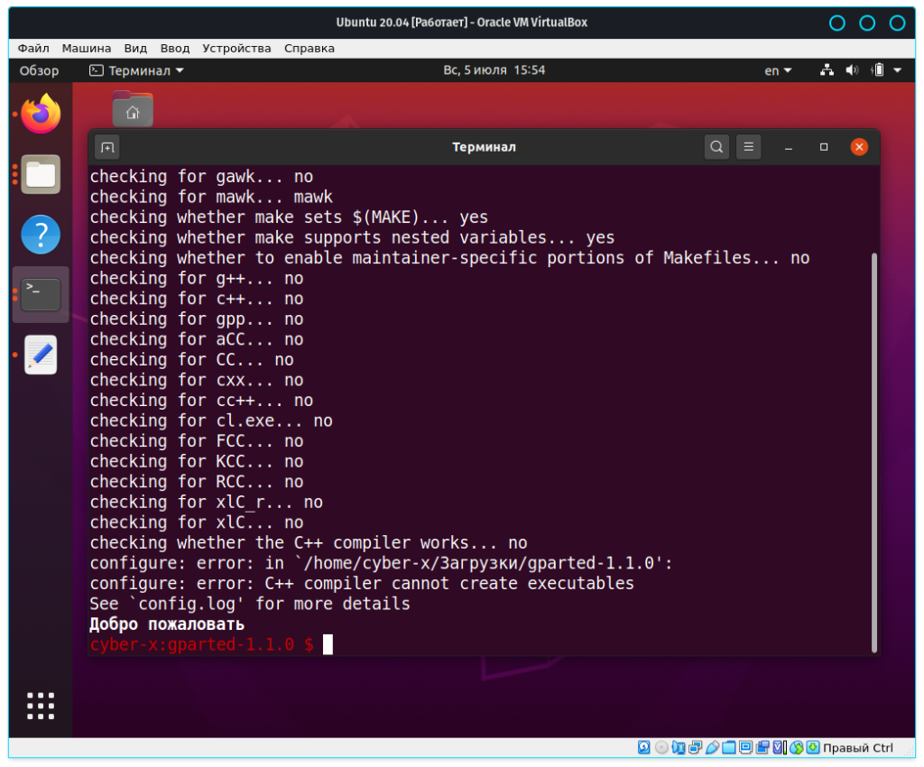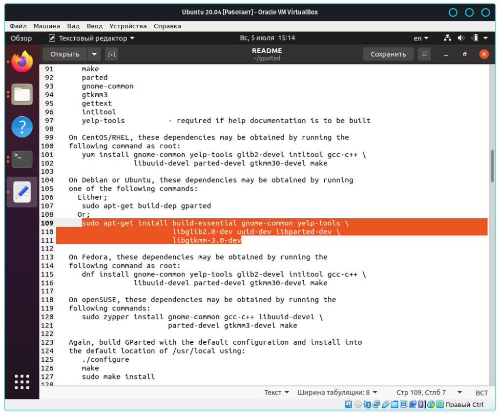 Теперь приступаем к сборке программы GParted. Для этого вводим команды которые написаны в файле README.