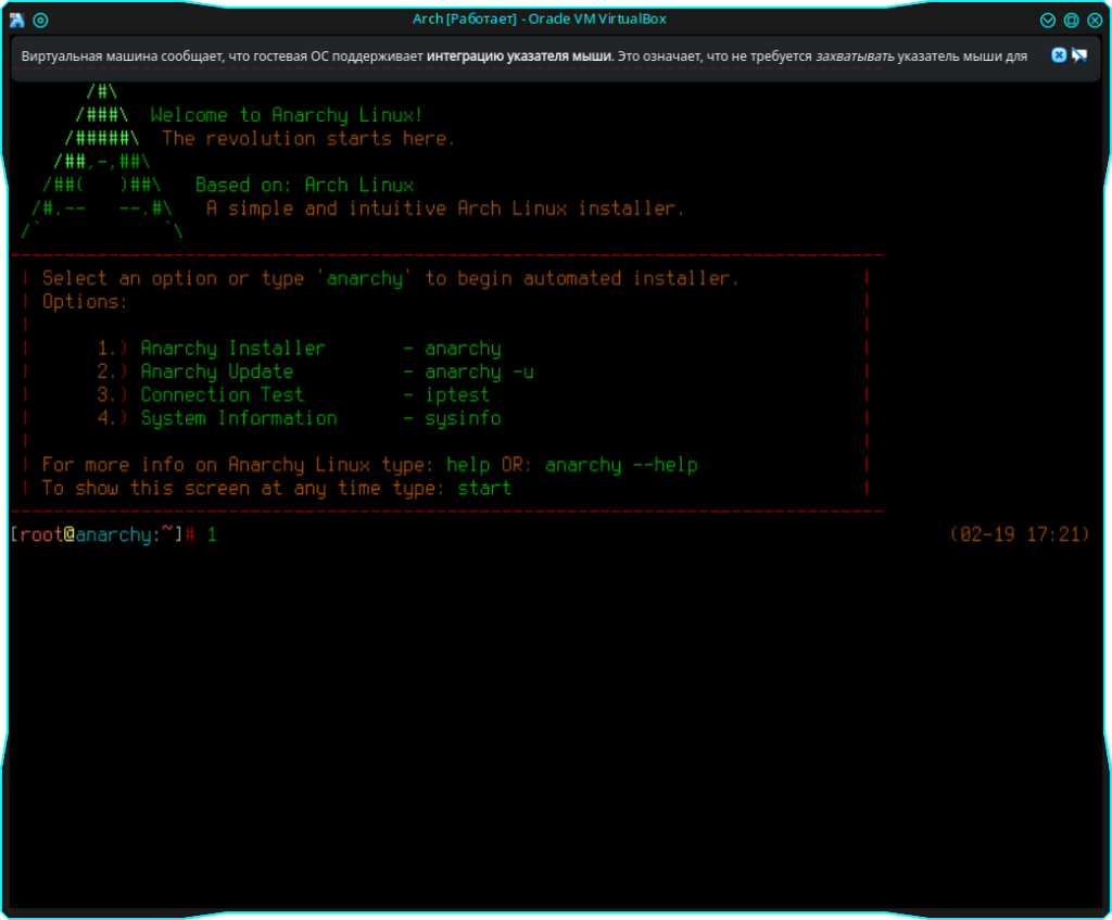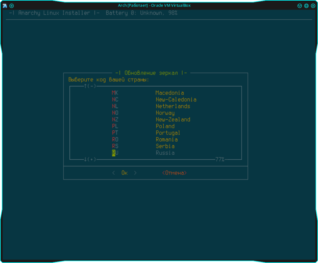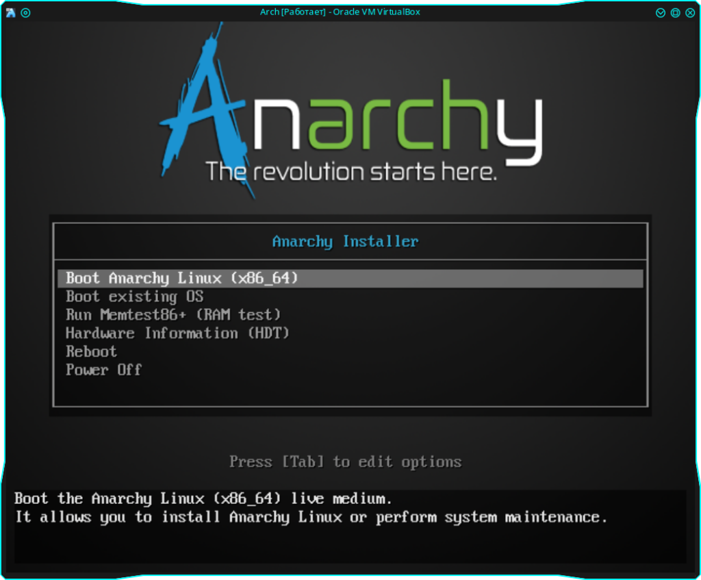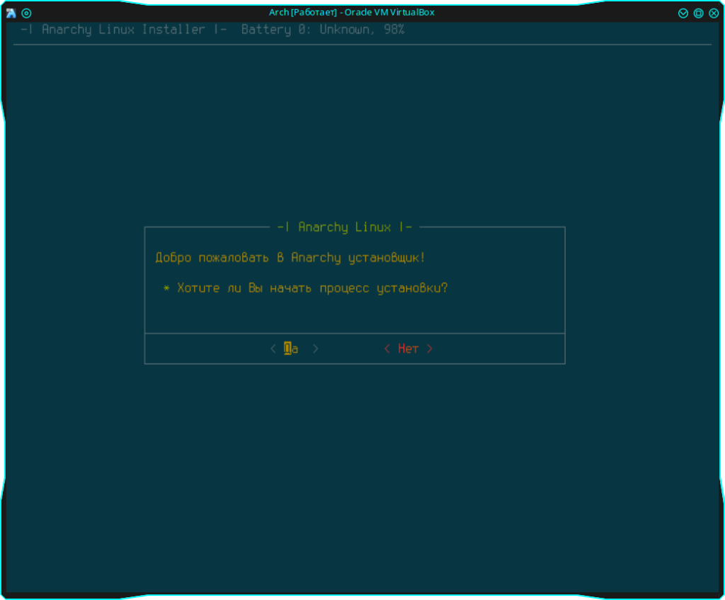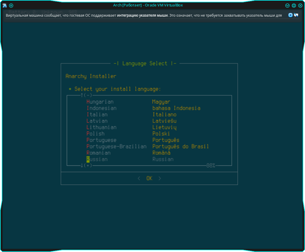 Указываем язык, на котором установщик будет отображать диалоговые окна. Управление в Anarchy осуществляется без мышки. Курсор перемещается при помощи стрелочного блока, для подтверждения выбора используется кнопка Enter.
