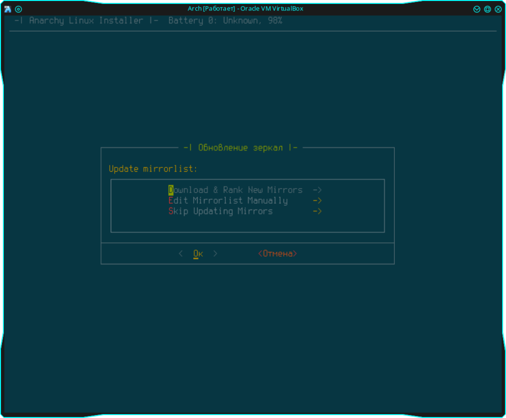 Разрешаем Anarchy обновить зеркала репозиториев в автоматическом режиме, чтобы выбрать ближайшие географически.