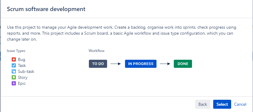 Далее появится информация о базовое реализации Scrum методологии в Jira.