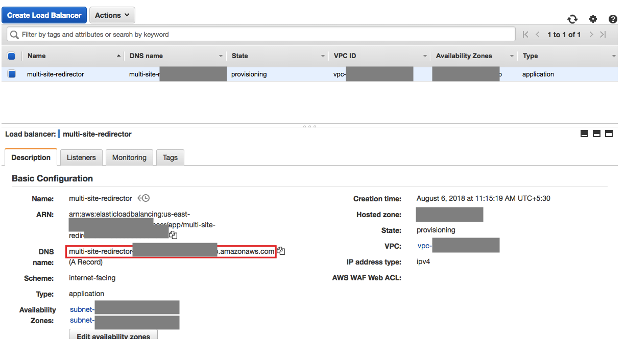 instances. You can specify only one subnet per Availability Zone.The output includes the Amazon Resource Name (ARN) of the load balancer, with