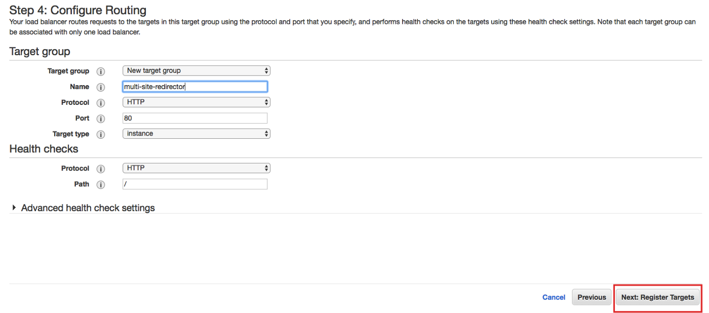 reroutes traffic to healthy instances. In this step, you customize the health checks
