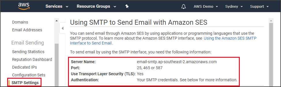 Before you can use the Amazon SES SMTP endpoint, you must obtain two things. The SMTP credential and SMTP endpoint address.
