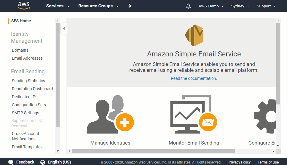 After a few minutes, your domain listed in the Amazon SES console is labeled as verified