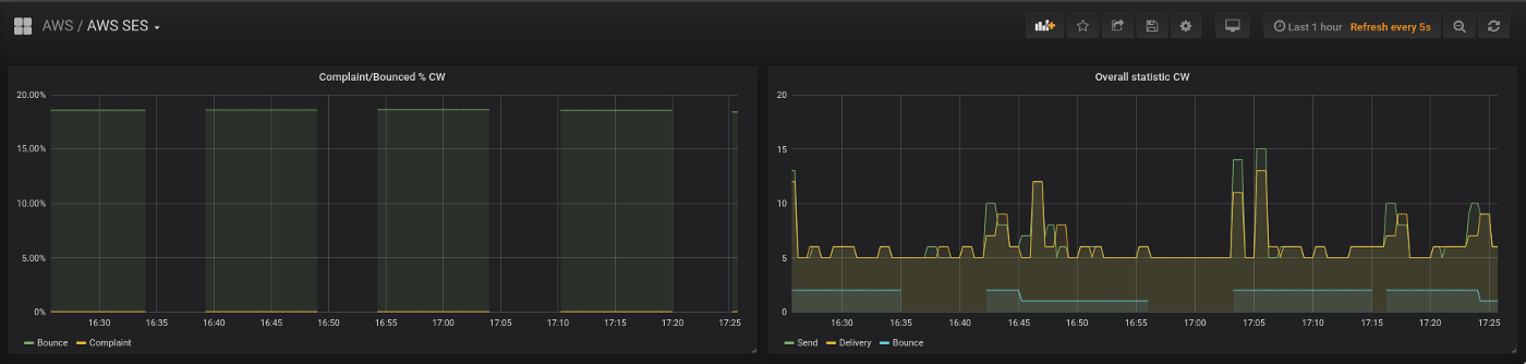 For alerting we can use AWS CloudWatch metrics for AWS SES: