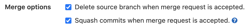 Рекомендуем вам делать при слиянии веток сквош: объединять коммиты. Это помогает избежать путаницы и длинного списка коммитов. Для этого просто поставьте галочку около пункта «Squash commits when merge request is accepted». Далее нажмите на «Merge».