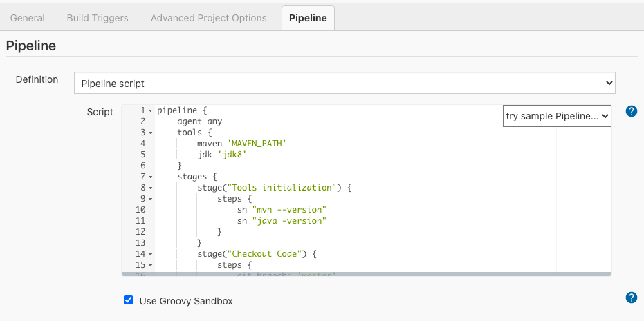 … но мы в данной инструкции будем рассматривать написание кода напрямую в Jenkins.