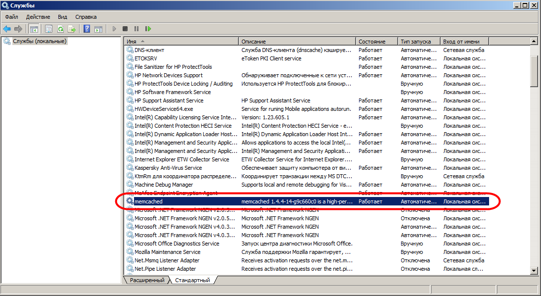 После завершения установки служба Memcached запустится автоматически. Чтобы проверить статус службы, введите следующую команду: