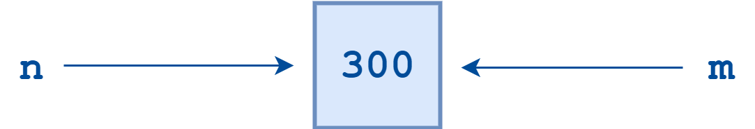 Это присвоение создает целочисленный объект со значением 300 и присваивает переменной n, указывающей на этот объект.