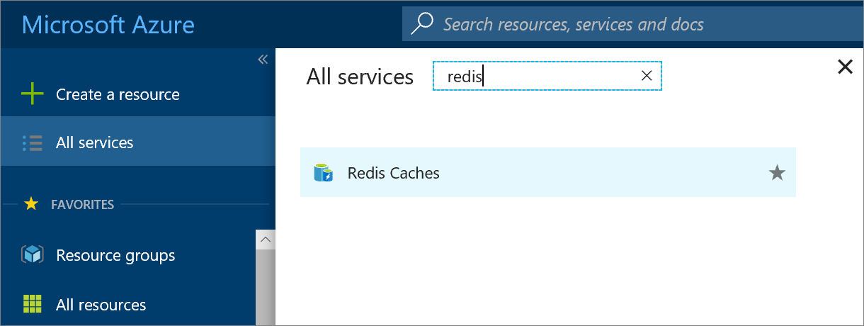 Чтобы просмотреть кэши, щелкните Все службы и выполните поиск по фразе Azure Cache for Redis (Кэш Redis для Azure).