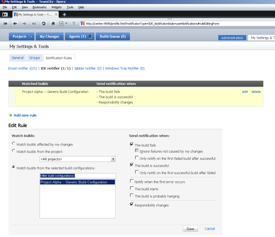 Правила, по которым сборка заканчивается с ошибкой, можно настроить — об этом мы поговорим позже. Все сборки в заданной конфигурации попадают в Build Configuration Home, где можно отслеживать их статус.