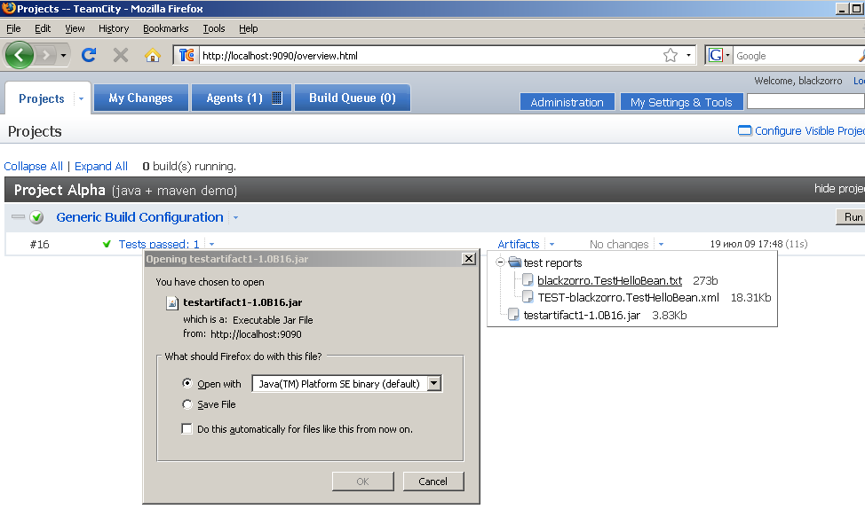 Еще одна интересная фича в TeamCity — артефакты. Это все те файлы, которые были получены в результате сборки: файлы с логами, WAR-файлы и так далее.