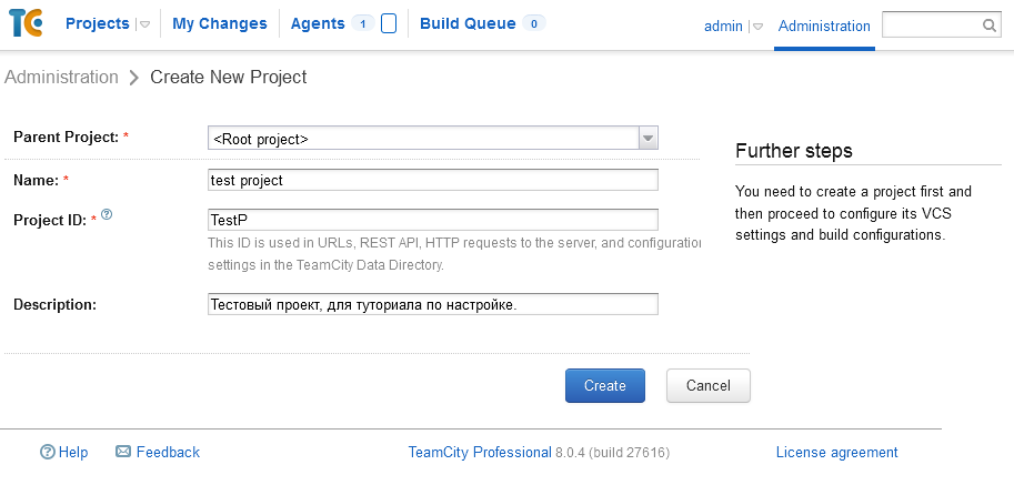 Создание Project TeamCity