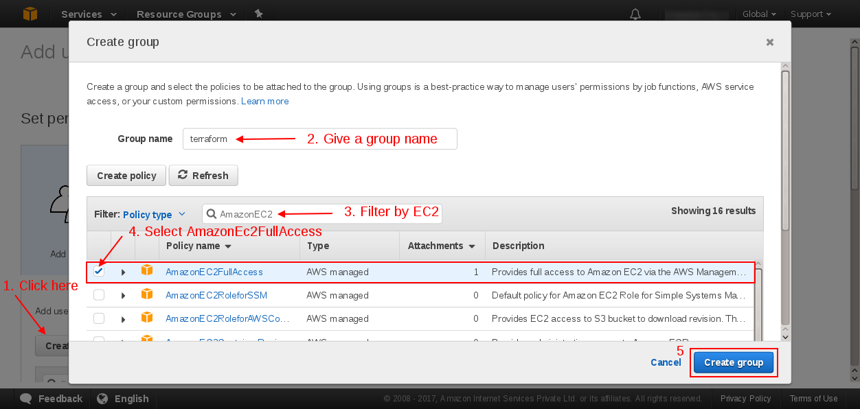 - attaching the policy to the role using terraform.