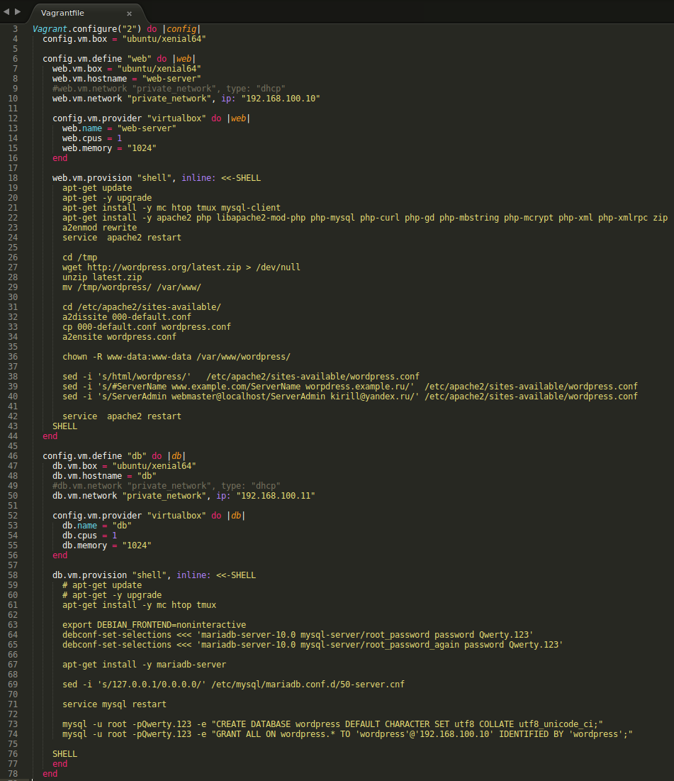 В данной статье мы воспользуемся , чтобы продемонстрировать развертывания виртуальной машины. Для этого отредактируем конфигурационный файл Vagrantfile: