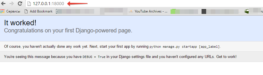 Django приложение можно увидеть на 18000 порту хост-машины.