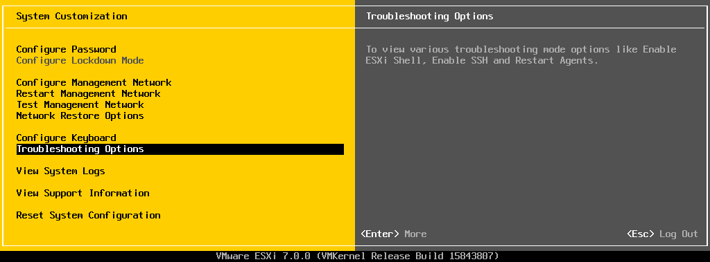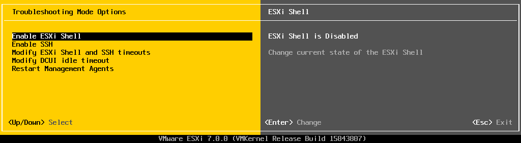 Здесь включаем при необходимости ESXi Shell и SSH-доступ к нашему ESXi-хосту путем выбора соответствующих строк и жмем Enter: