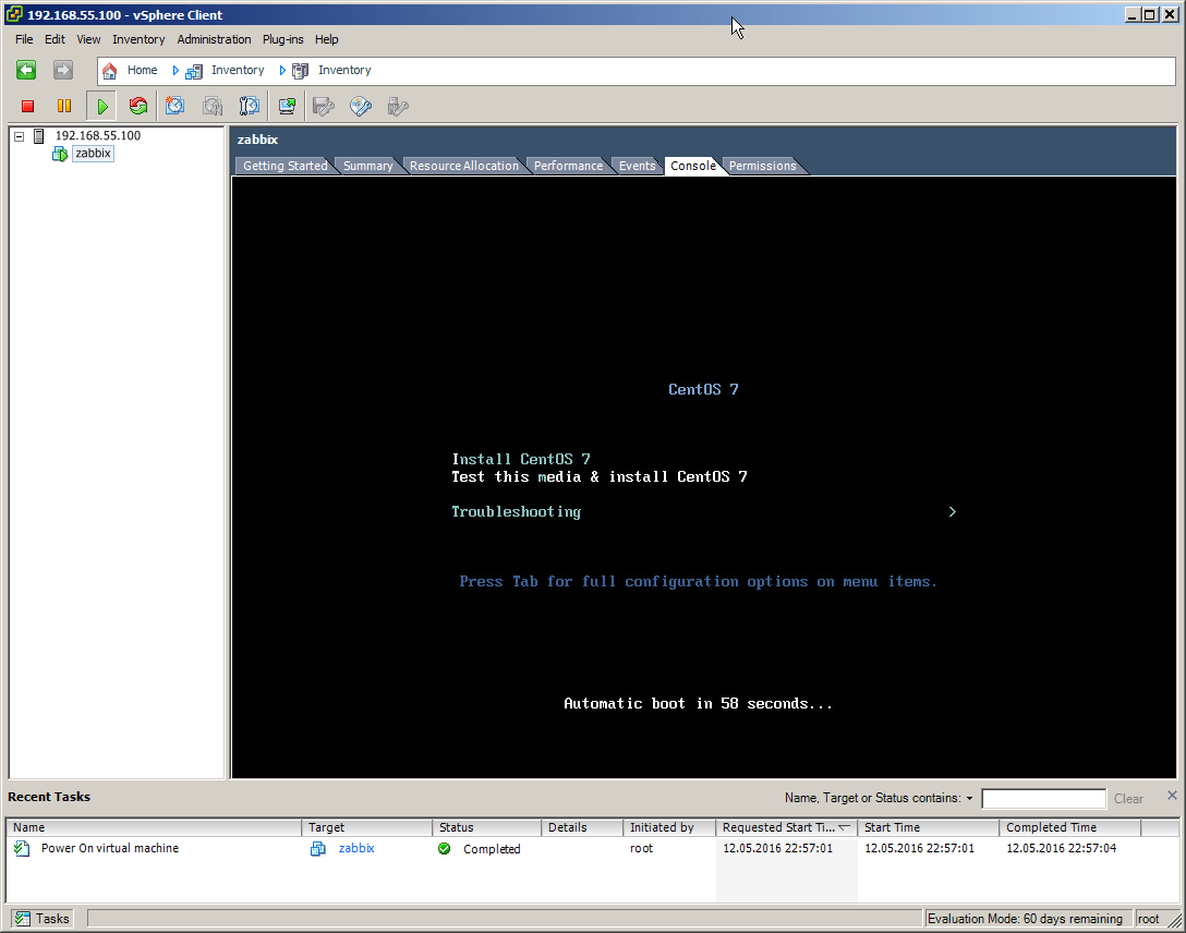 Относительно установленного ESXi, необходимо знать его IP адрес, логин (root) и пароль от него. Далее по пунктам.