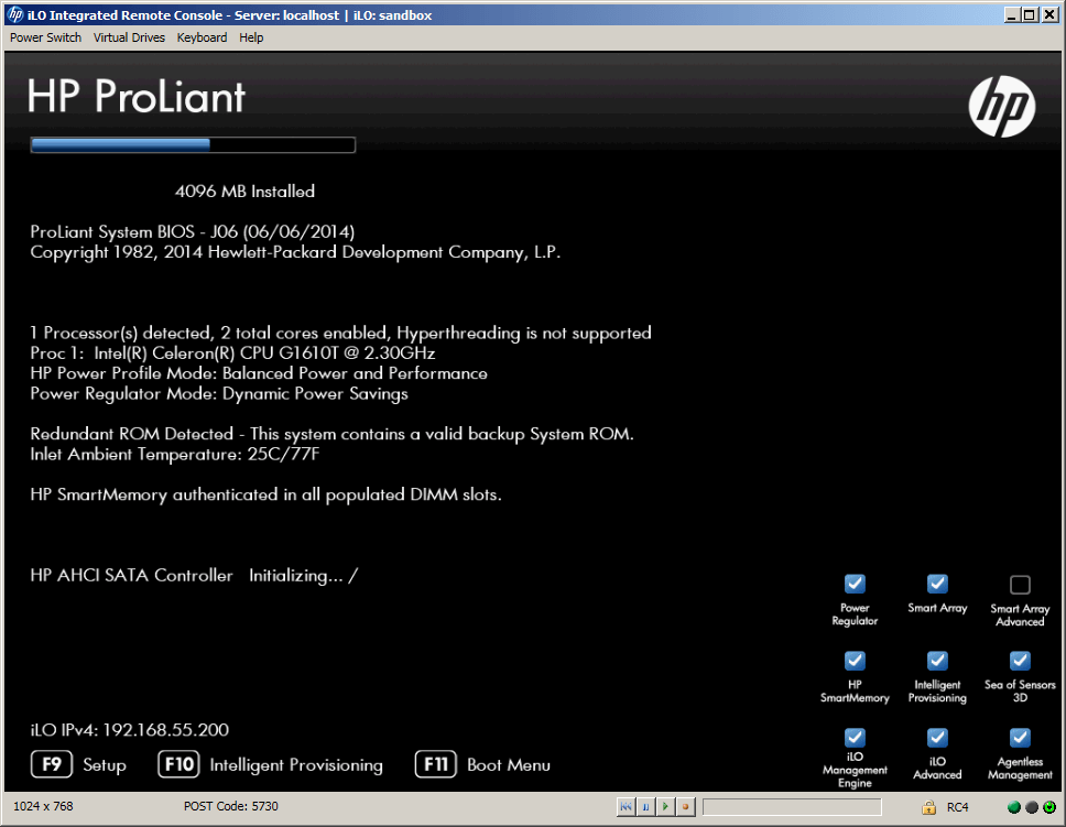 После того, как вы определились с выбором режима работы хоста (RAID, Sata AHCI) с жестким диском, выставляем нужное в настройках BIOS и загружаем сервер с установочного CD-диска. В моем случае использован стандартный эконом-вариант поставки сервера, потому привод был использован внешний через USB.