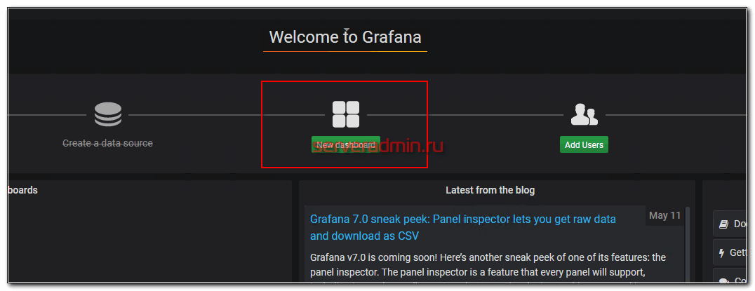 Осталось добавить данные на единый Dashboard. Для этого идем на главную графаны и добавляем новый dashboard.