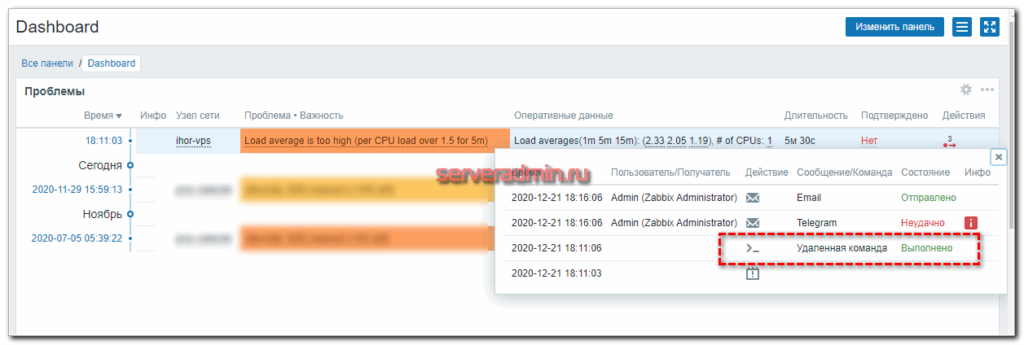Я хочу получить информацию о запущенных процессах на хосте в момент срабатывания триггера. Это позволит мне спокойно посмотреть, что создает нагрузку, когда у меня будет возможность. Мне не придется идти руками в консоль хоста и пытаться ловить момент, когда опять появится нагрузка.