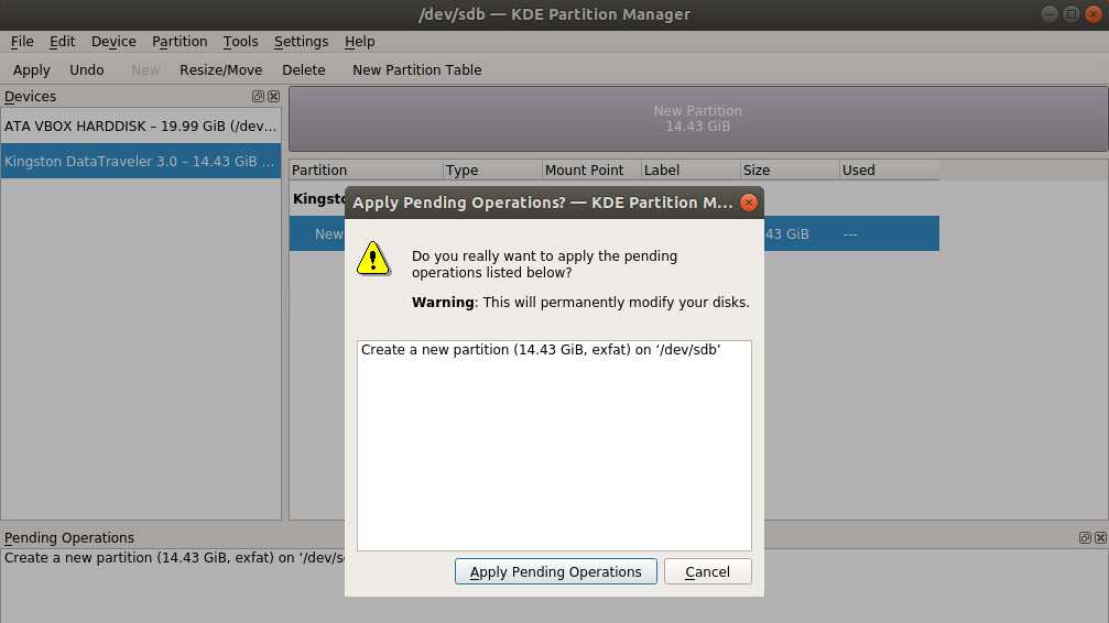 Теперь запустим их. Для этого необходимо в левом верхнем углу программы нажать кнопку «Применить / Apply» и подтвердить свои намерения в окне нажатием кнопку «Apply Pending Operations».