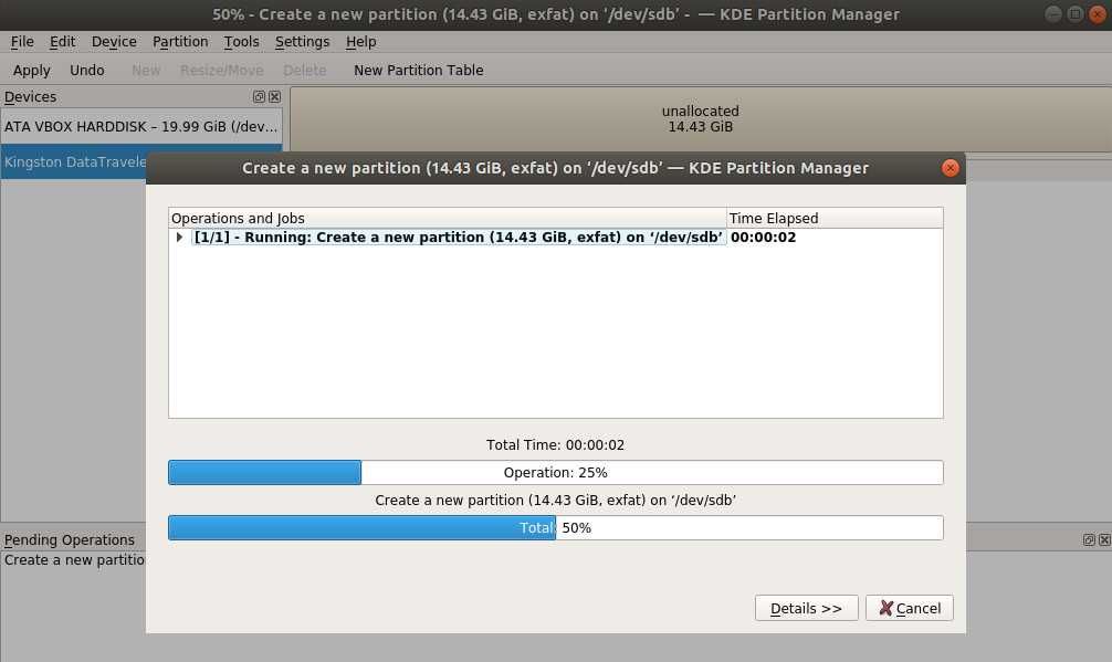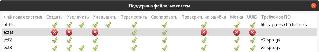 Видите, как легко было создать в графической оболочке Linux диск с файловой системой exFAT?