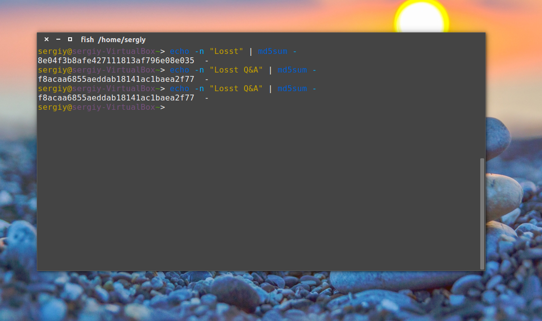 echo -n «Losst» | md5sum — $ echo -n «Losst Q&A» | md5sum —