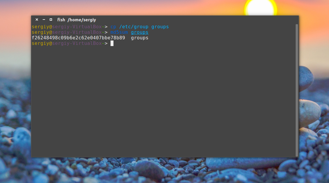 Например, давайте подсчитаем контрольную сумму для файла /etc/group: