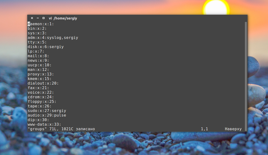 Сначала скопируйте файл /etc/group в домашнюю папку чтобы на нем немного поэкспериментировать: