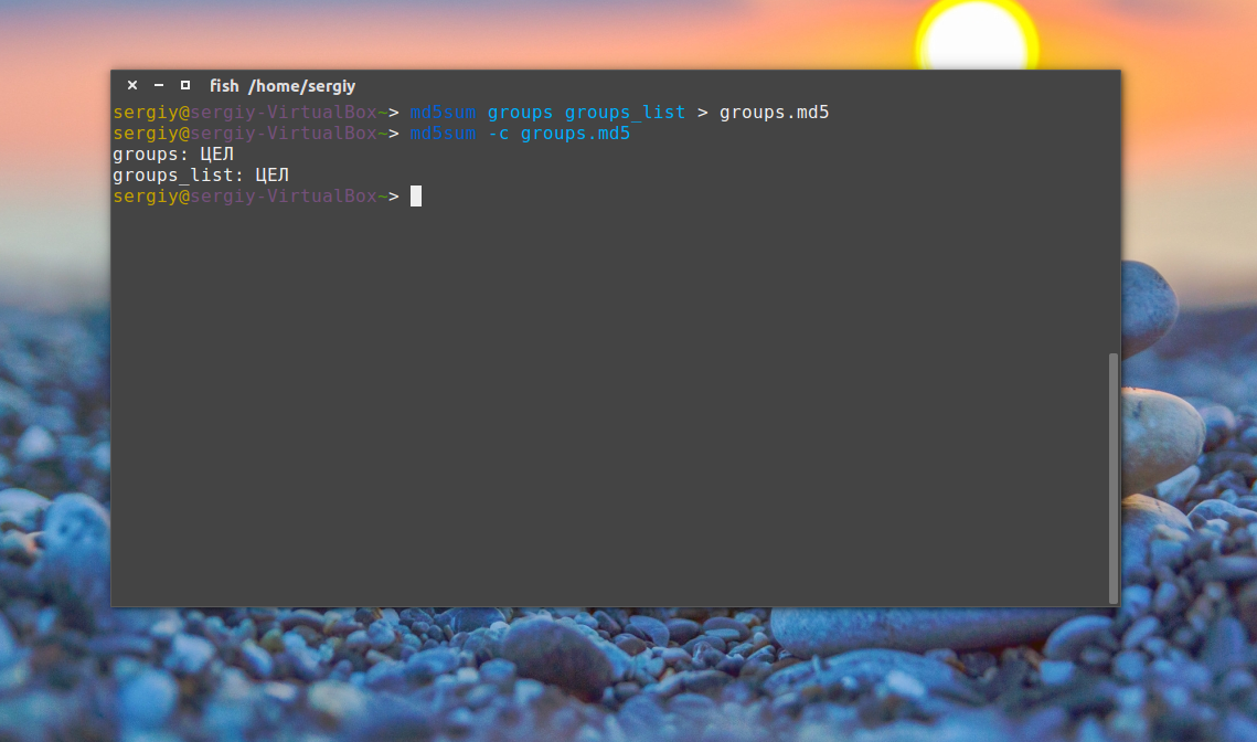 Чтобы проверить, не были ли файлы изменены с момента создания контрольной суммы используйте опцию -c или —check. Если все хорошо, то около каждого имени файла появится слово OK или ЦЕЛ: