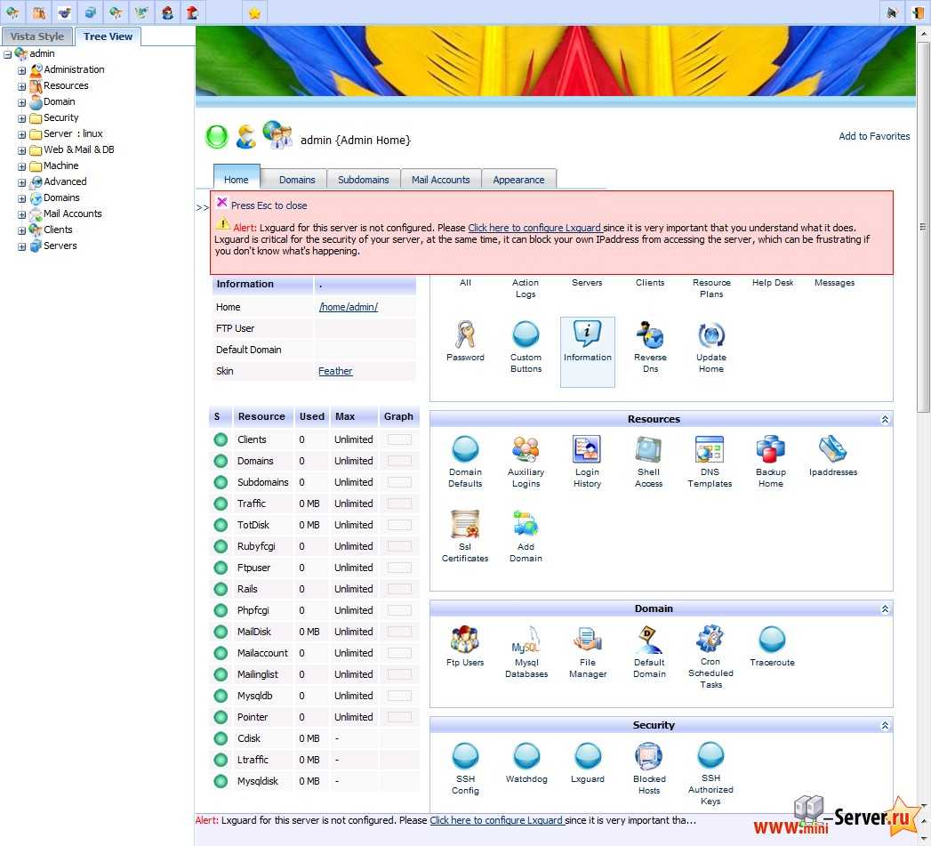 - Если Вы выполнили дисковые разделы в ручную, убедитесь, что у вас есть большие /tmp. Kloxo используется /tmp для создания и хранения временных резервных копий, и при нехватки дискового пространства, просто не будет работать.