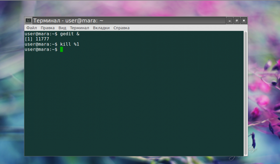 Для завершения фонового процесса применяют команду kill с номером программы: