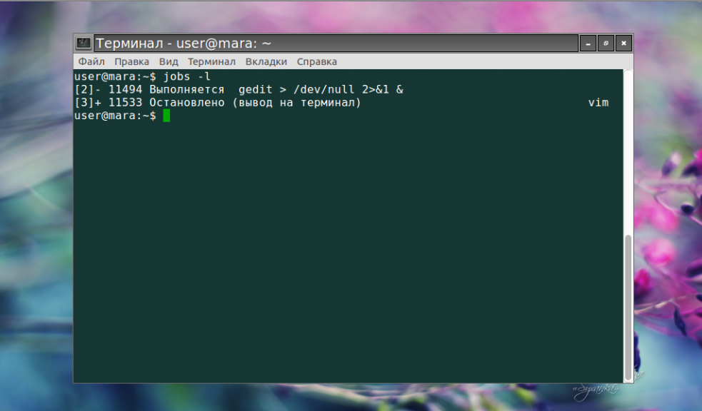 Убедиться, что задачи больше нет в списке заданий, можно, использовав уже знакомую утилиту jobs -l. А чтобы просмотреть перечень всех запущенных процессов (в том числе и отключенных) применяется команда