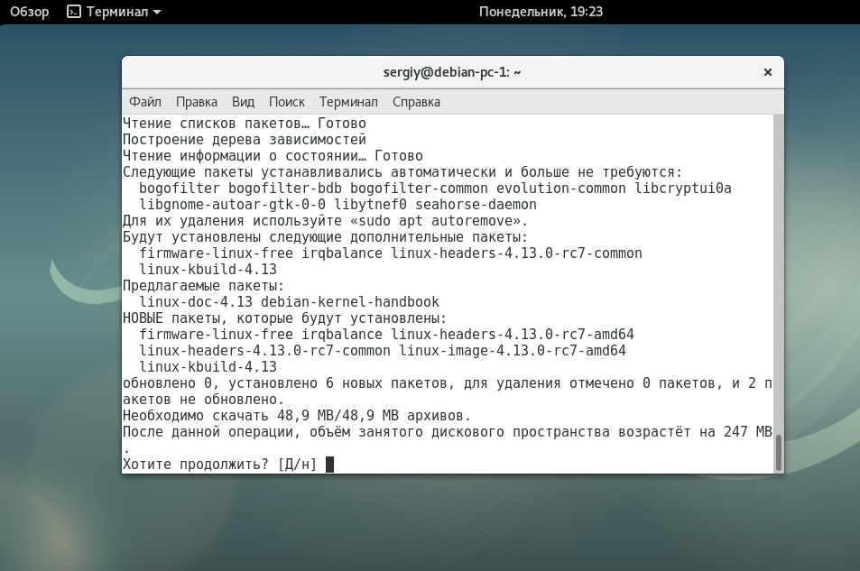 Тут мы уже видим новую версию ядра Linux 4.13 из репозитория experimental, о которой я говорил выше. Дальше мы можем ее установить: