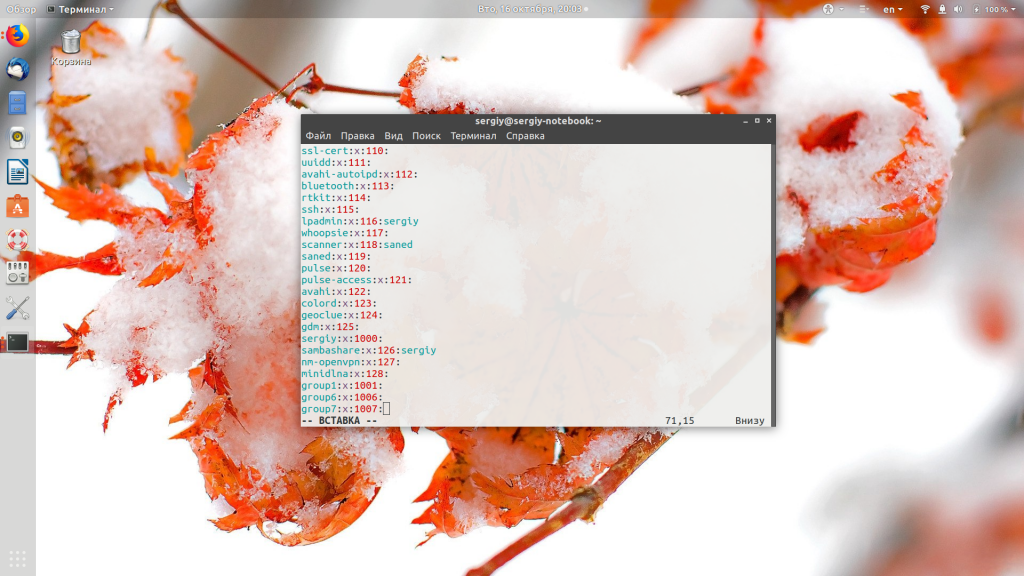 Первичная группа пользователя соответствует его имени, указанному при регистрации в системе. Однако в некоторых случаях может возникнуть необходимость изменить одну группу на другую, например users. Как это должно выглядеть на практике: