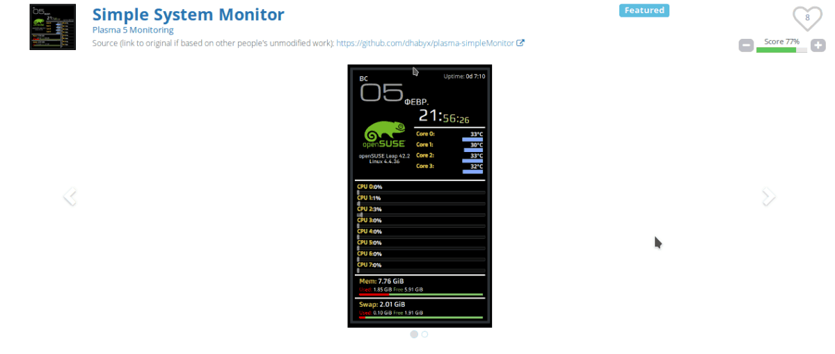 Настройте Simple System Monitor на рабочем столе KDE Plasma Desktop, посетив вкладку «Файлы» на эта страница. Затем загрузите последний файл Plasmoid.