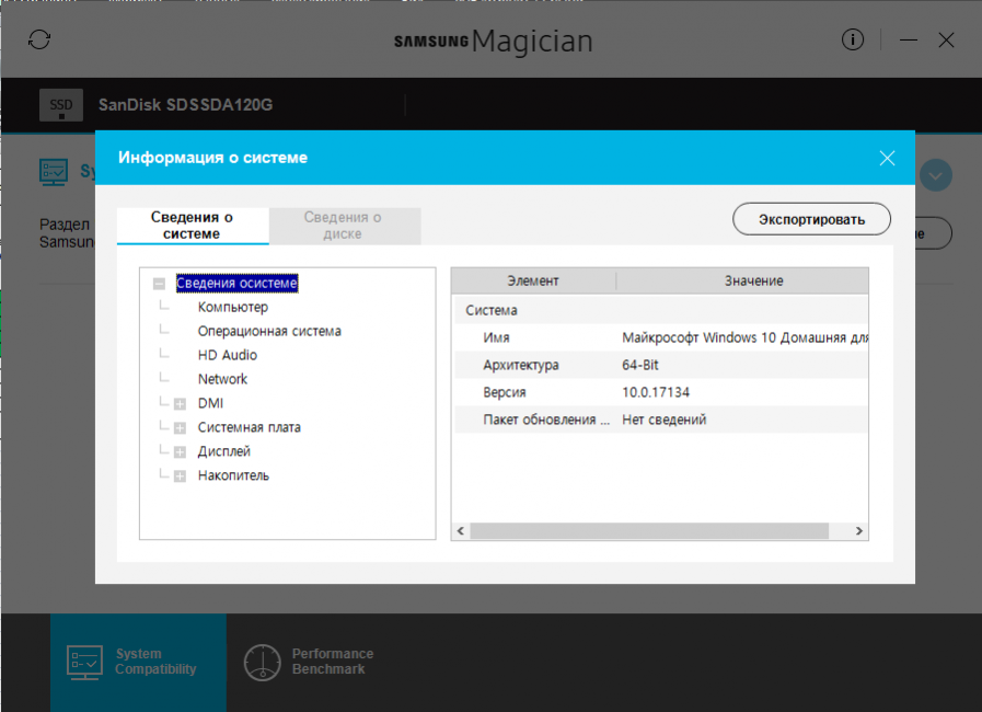 - В этом окне вы можете ознакомиться с моделью твердотельного накопителя, его серийный номер, объём памяти