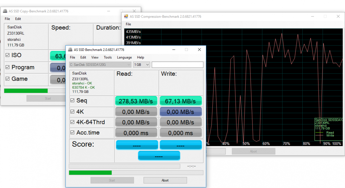 Тесты чтения (Read), записи(Write), копирования (Copy), доступа к сжатым файлам (Compression) в AS Benchmark