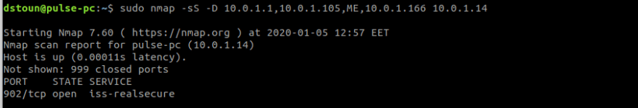 - -D фиктивный_хост1,фиктивный_хост2,фиктивный_хост3,ME,фиктивный_хост5Сканирование с использованием фиктивных хостов. Для цели это будет выглядеть как-будто её сканируют все перечисленные тобой хосты, при этом довольно трудно будет понять откуда происходило настоящее сканирование. Фиктивные хосты нужно указывать через запятую, без пробелов. Параметром ME можно задать каким в списке будет твой настоящий адрес. Если этот параметр не указывать Nmap поставит его рандомно.