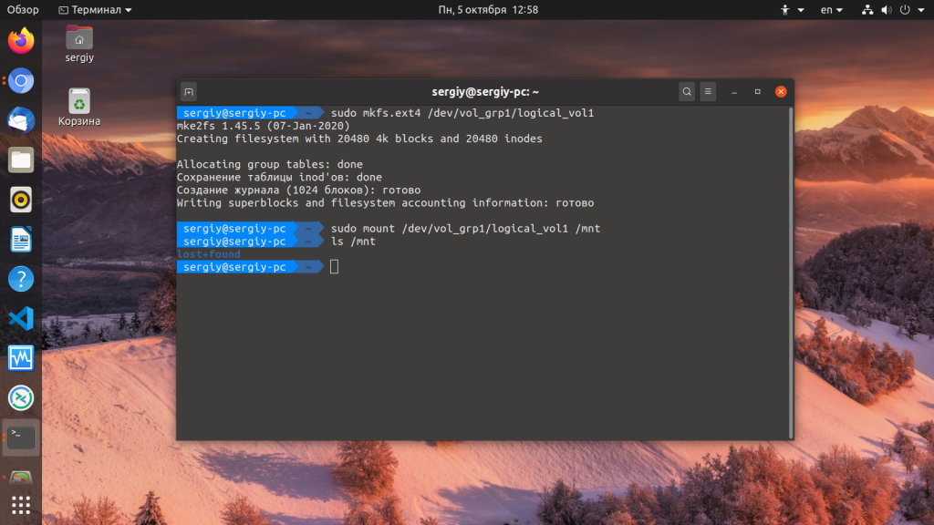 Как видите, монтирование LVM в Linux ничем не отличается от монтирования обычных разделов.