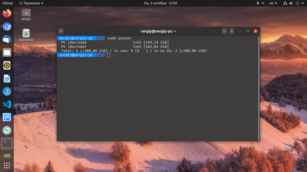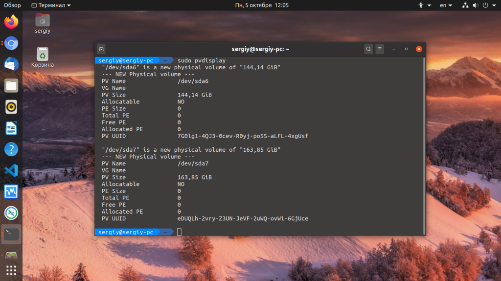 Убедимся, что всё получилось. Просмотреть физические тома можно командой: