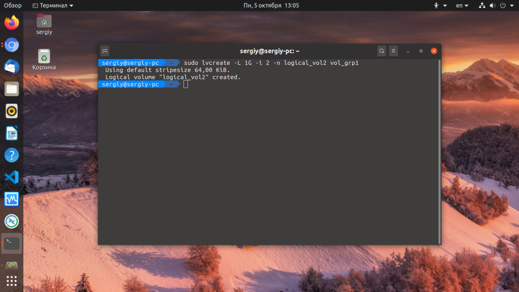 Этой командой мы выделим 300 мегабайт из группы litl_admin, и назовём этот логический том “disk_1”.
