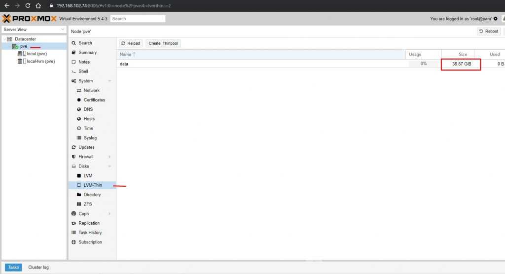 В вэб интерфейсе нашей машины мы тоже видим изменения в логическом томе data: