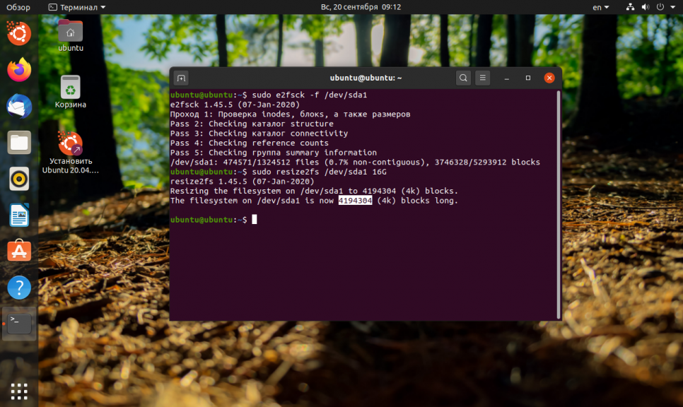 Расширяем раздел 1 до 20.5GB (это весь доступный размер):