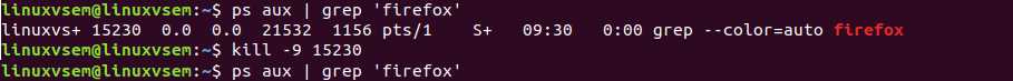 Допустим, браузер Firefox перестал отвечать на запросы, и вам нужно завершить процесс Firefox. Чтобы найти PID браузера, используйте команду: