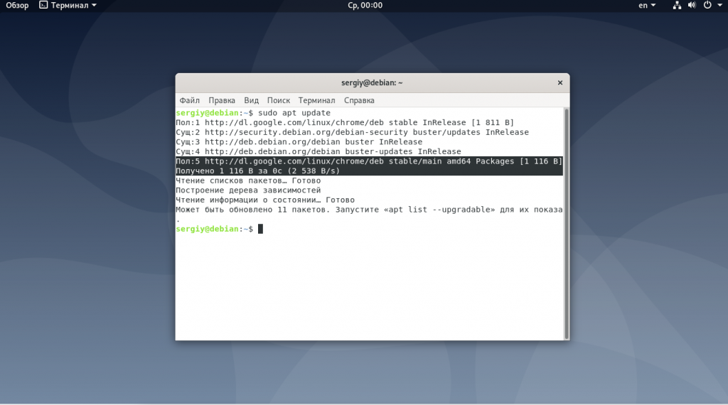 Затем обновите индекс пакета, а далее можно установить пакет docker.