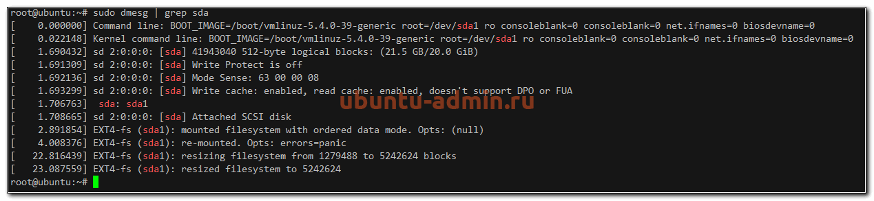 Вы увидите лог загрузки системы ubuntu, содержащий информацию только о диске sda. Аналогичным образом можно фильтровать вывод по другим темам. Например, посмотреть все ошибки, которые были во время загрузки.