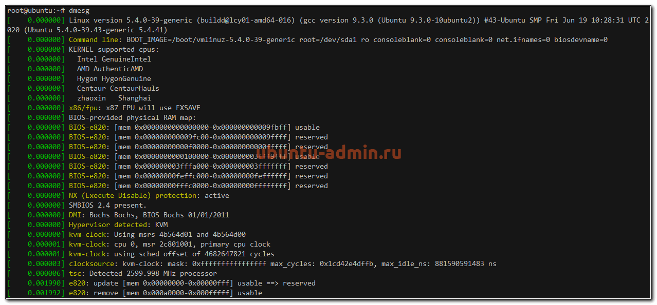 - dmesg — в этом логе хранится информация о загрузке ядра и драйверов оборудования.